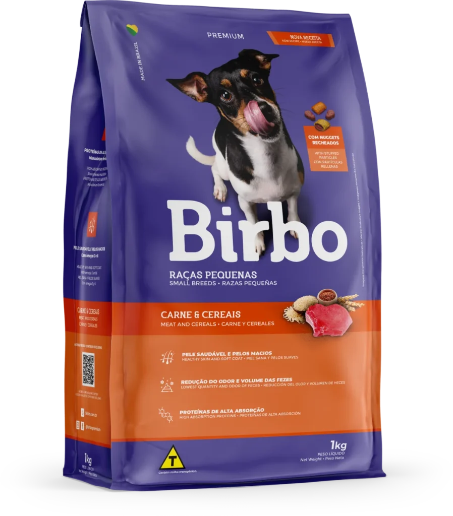 Milho integral moído (mín. 25%), farinha de vísceras de aves, farinha de carne e ossos de bovino (mín. 6%), quirera de arroz (mín. 1,2%), farelo de glúten de milho 60, farelo de trigo, óleo de vísceras de aves, hidrolisado de fígado de frango, farinha de trigo, linhaça integral moída (mín. 0,6%), levedura seca de cervejaria, vitaminas (A, D3, E, K3, B1, B2, B6, B12, ácido pantotênico, niacina, ácido fólico, biotina), cloreto de colina, minerais (sulfato de manganês, sulfato de zinco, sulfato de ferro, sulfato de cobre, iodato de cálcio, selenito de sódio), cloreto de sódio (sal comum), extrato de Yucca schidigera (mín. 0,01%), corantes (vermelho ponceau 4R, amarelo tartrazina, amarelo crepúsculo, dióxido de titânio), antioxidantes (BHA, BHT).