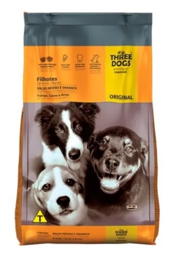 Three Dogs Original Puppies Races Med/Gde 10 Kg é o alimento perfeito para seu filhote de raça média ou grande. Com um teor de proteína bruta de 33%, garante um crescimento saudável e uma nutrição equilibrada. O delicioso sabor de frango e carne fará com que seu animal de estimação aproveite cada mordida. Além disso, esse alimento protege a saúde bucal, cuidando dos dentes e gengivas do seu cão. Apresentado em um saco de 10 kg, é ideal para garantir uma dieta completa durante a fase de filhote.